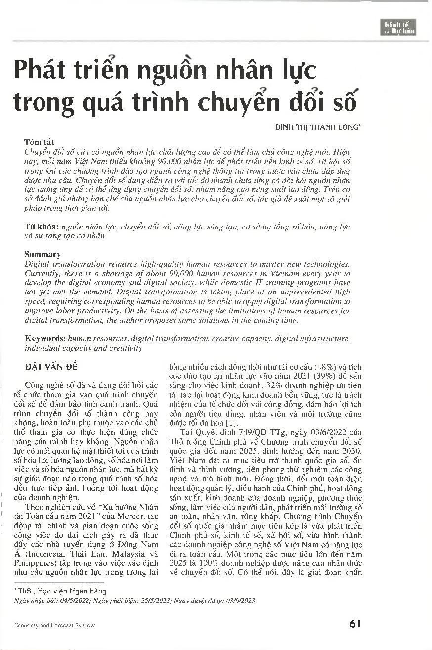 Phát triển nguồn nhân lực trong quá trình chuyển đổi số