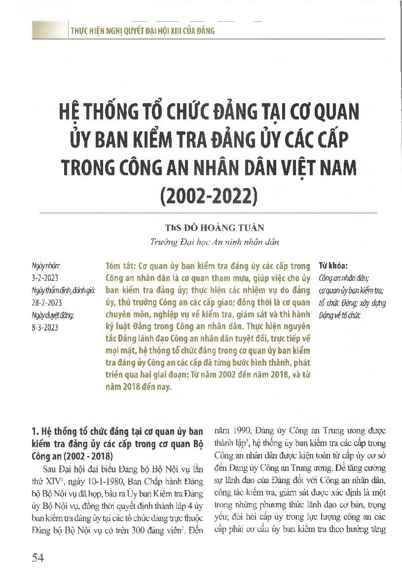 Hệ thống tổ chức đảng tại cơ quan ủy ban kiểm tra đảng ủy các cấp trong công an nhân dân việt nam (2002-2022)