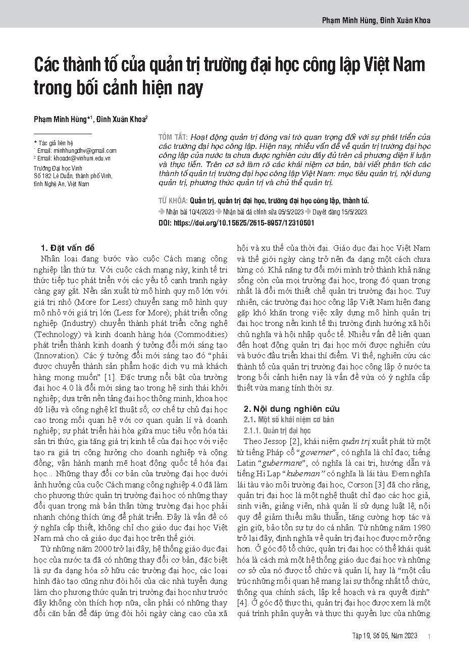 Các thành tố của quản trị trường đại học công lập Việt Nam trong bối cảnh hiện nay = The components of public university governance in Vietnam in the current context