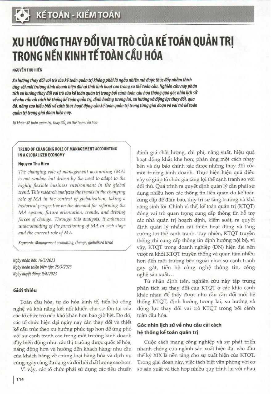 Xu hướng thay đổi vai trò của kế toán quản trị trong nền kinh tế toàn cầu hóa