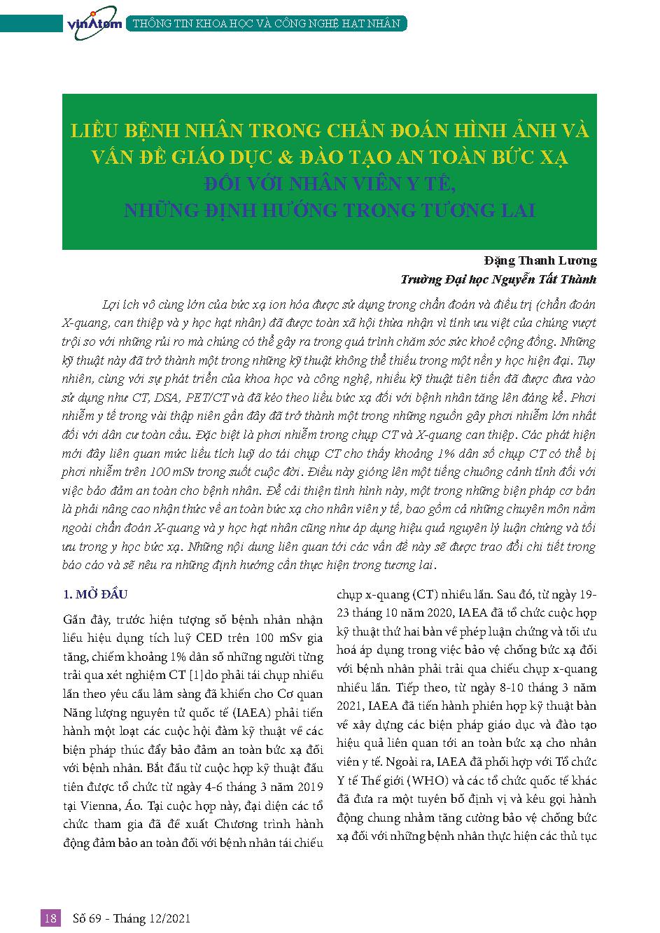 Liều bệnh nhân trong chẩn đoán hình ảnh và vấn đề giáo dục & đào tạo an toàn bức xạ đối với nhân viên y tế, những định hướng trong tương lai