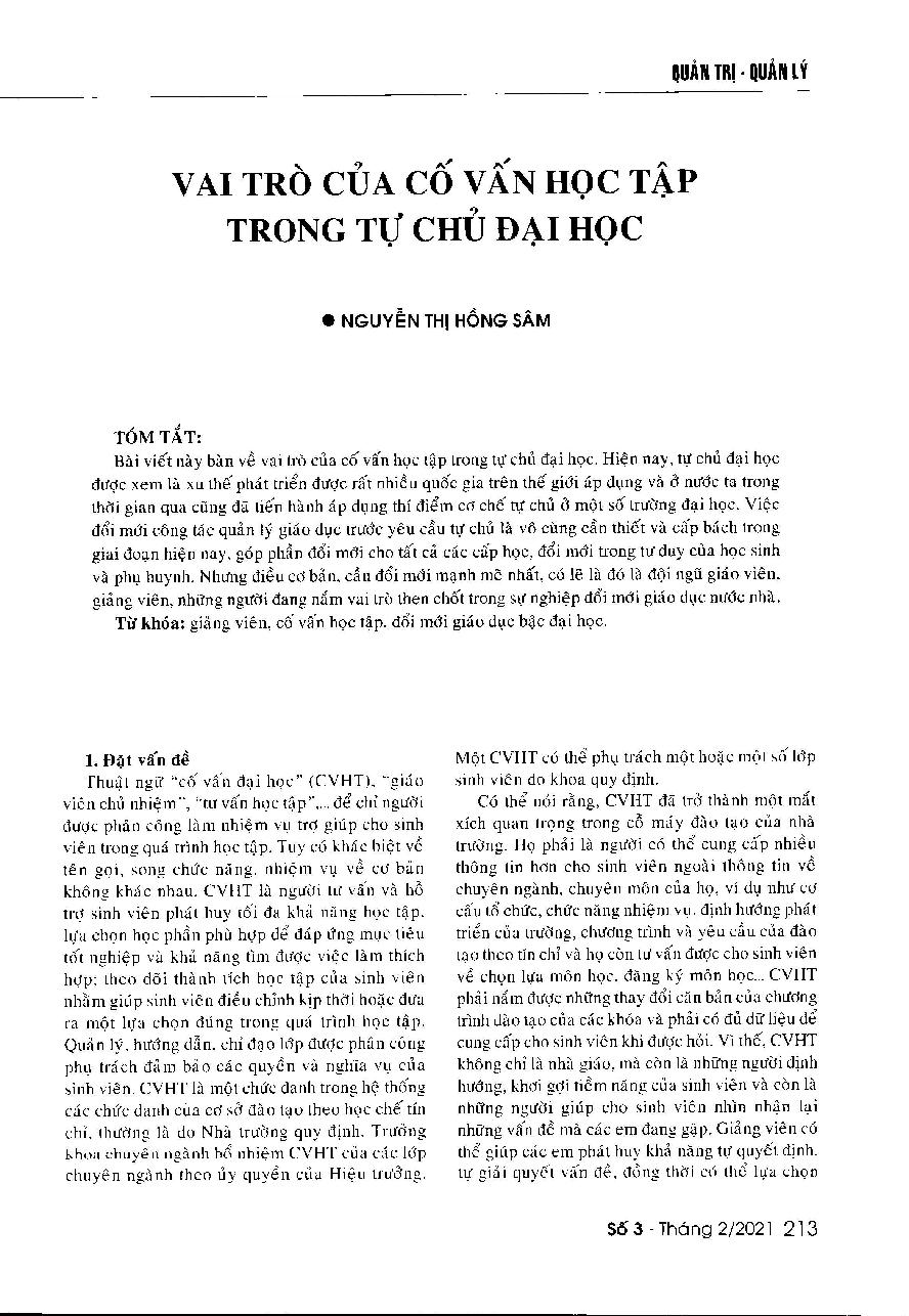 Vai trò của cố vấn học tập trong tự chủ đại học = The role of academic advisors in the financial self-autonomy of universities