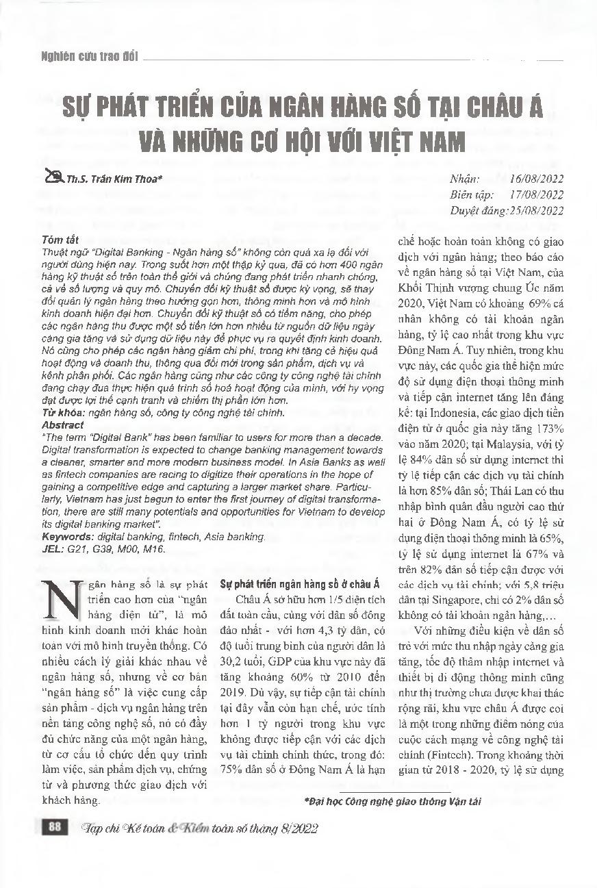 Sự phát triển của ngân hàng số tại châu Á và những cơ hội với việt Nam = The development of digital banking in Asia and opportunities for Vietnam