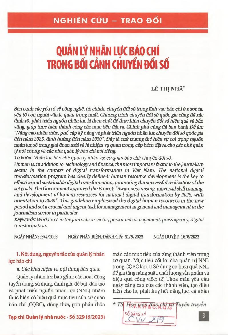 Những vấn đề pháp lý về chuyển đổi số trong quản trị nguồn nhân lực của doanh nghiệp tại Việt Nam = Legal Matters of Digital Transformation in Human Resource Management of Enterprises in Vietnam
