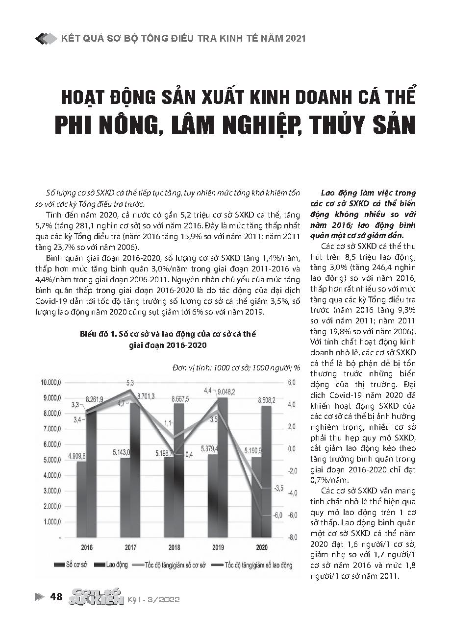 Hoạt động sản xuất kinh doanh cá thể phi nông, lâm nghiệp, thủy sản