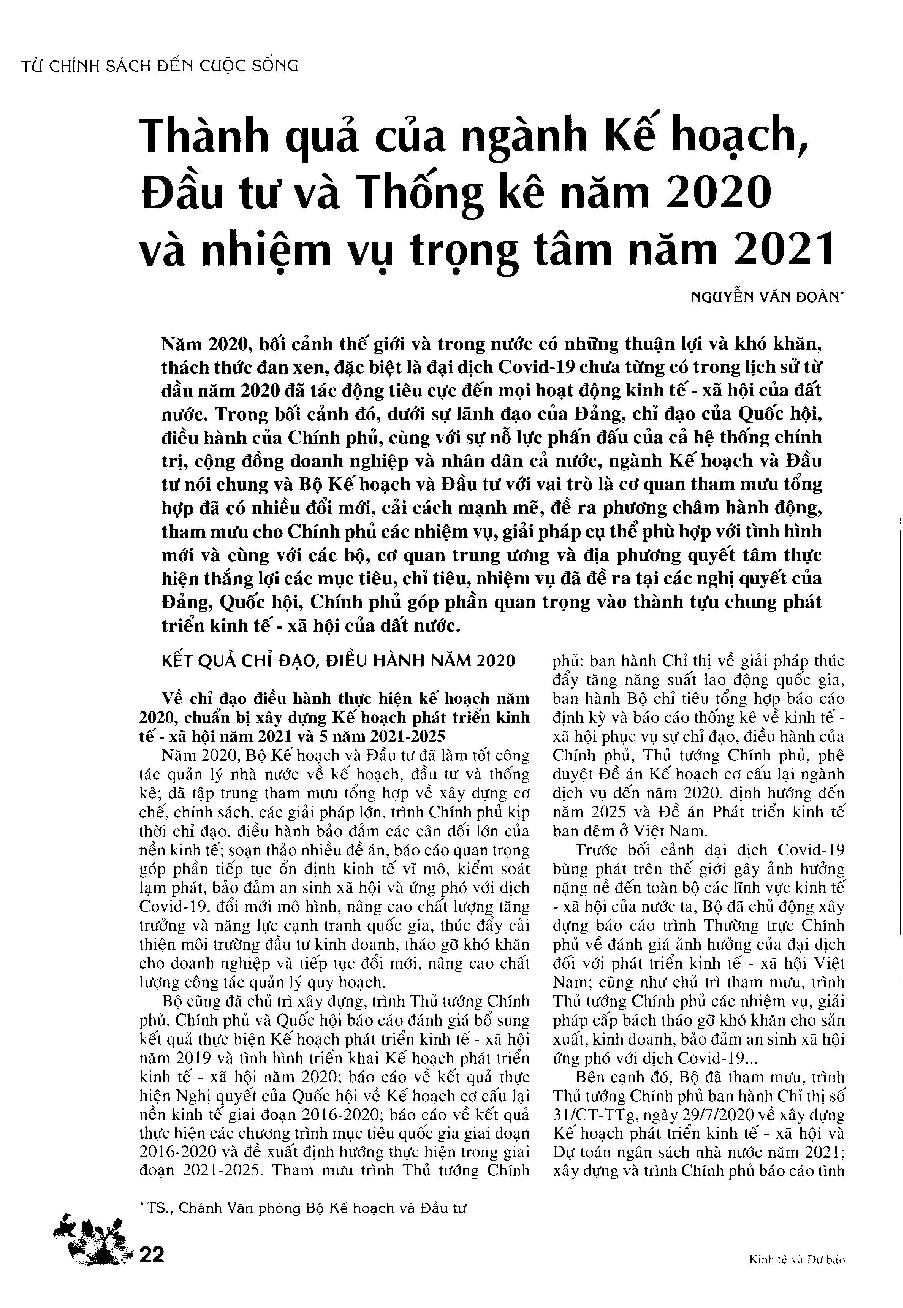 Thành quả của ngành Kế hoạch. Đầu tư và Thống kê năm 2020 và nhiệm vụ trọng tâm năm 2021