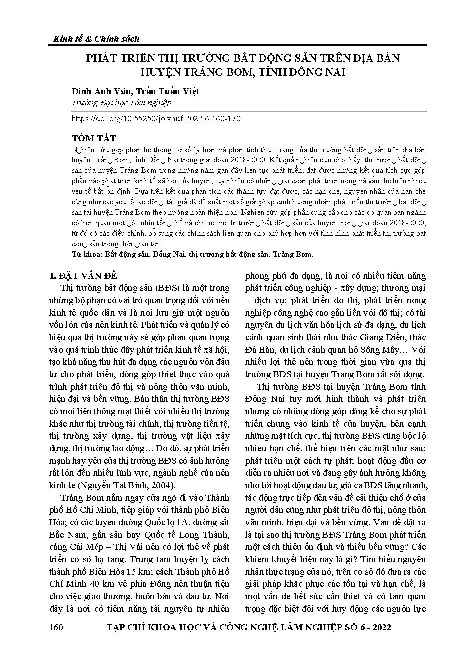 Phát triển thị trường bất động sản trên địa bàn huyện trảng bom, tỉnh Đồng Nai = Development of real estate market in trang bom district, dong nai province