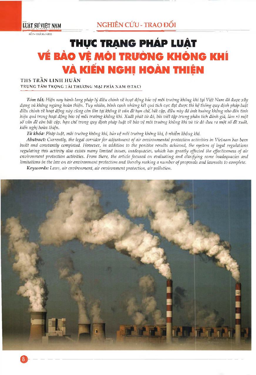 Thực trạng pháp luật về bảo vệ môi trường không khí và kiến nghị hoàn thiện = Reality of law on air environmental protection and recommendations for improvement