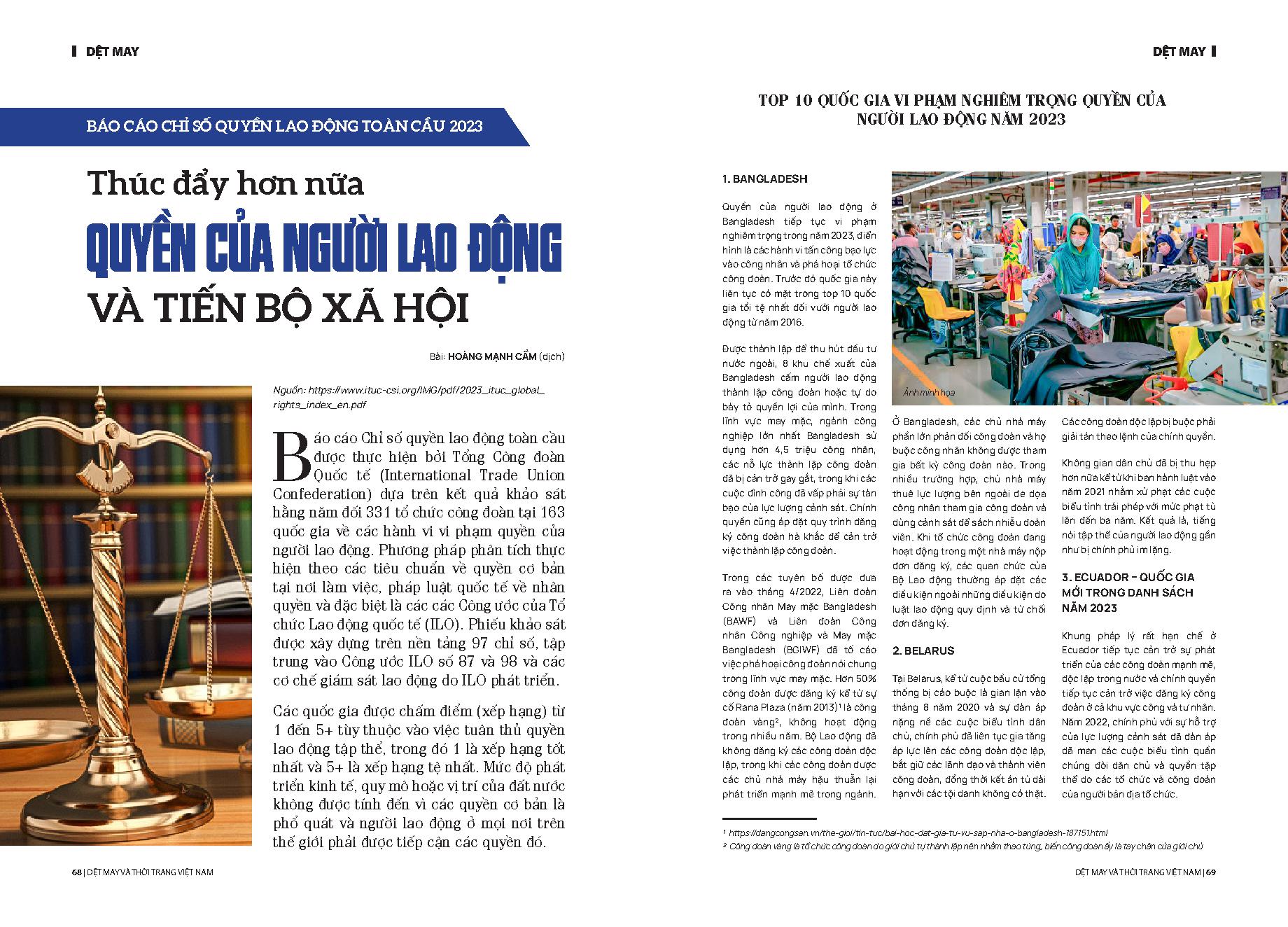 Thúc đẩy hơn nữa quyền của người lao động và tiến bộ xã hội