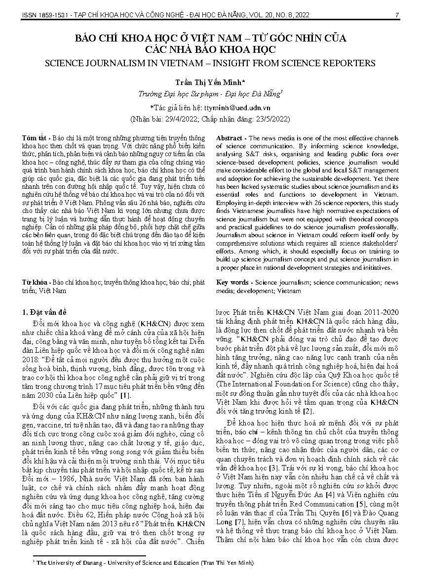 Báo chí khoa học ở Việt Nam – từ góc nhìn của các nhà báo khoa học = Science journalism in vietnam – insight from science reporters