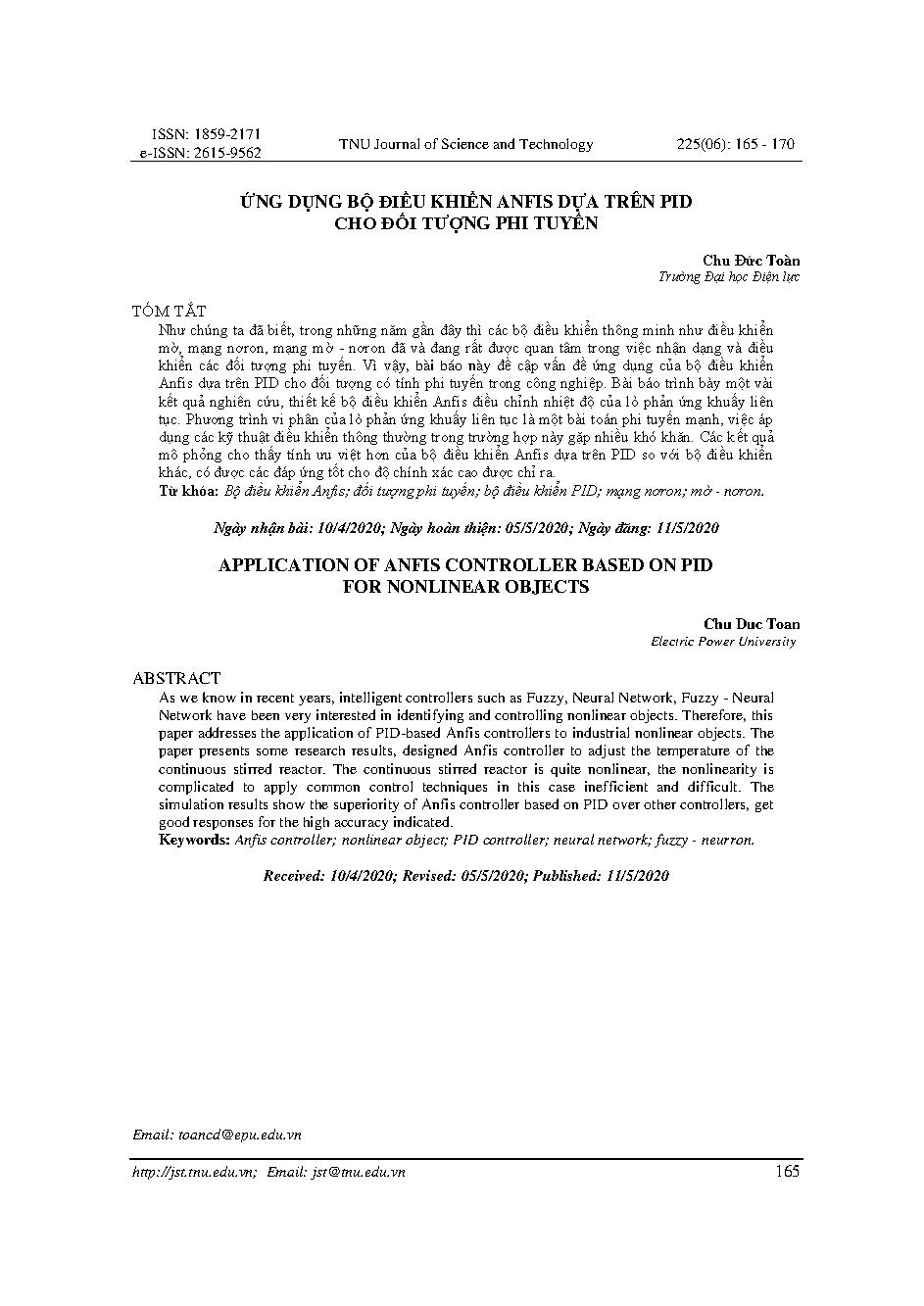 ỨNG DỤNG BỘ ĐIỀU KHIỂN ANFIS DỰA TRÊN PID CHO ĐỐI TƯỢNG PHI TUYẾN = APPLICATION OF ANFIS CONTROLLER BASED ON PID FOR NONLINEAR OBJECTS