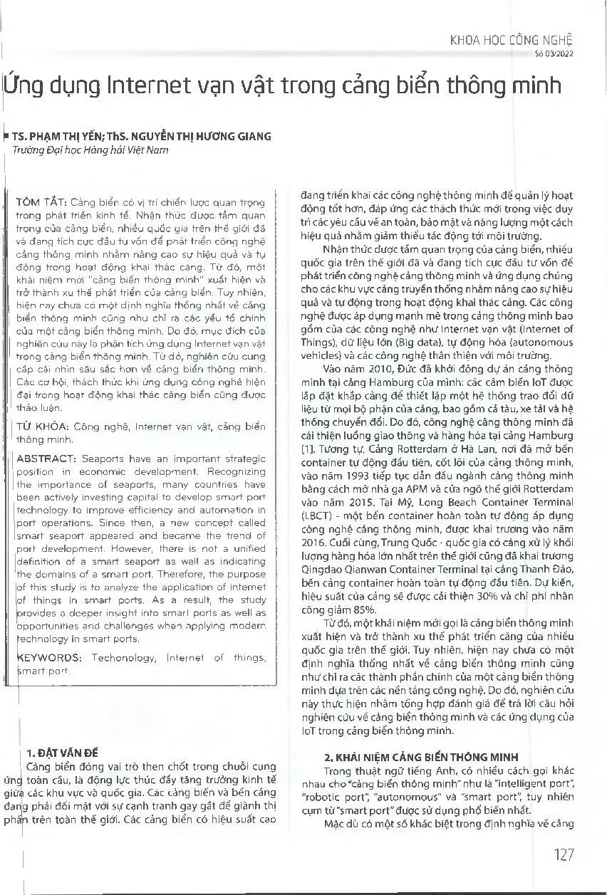 Ứng dụng Internet vạn vật trong cảng biển thông minh = loT application in smart seaports