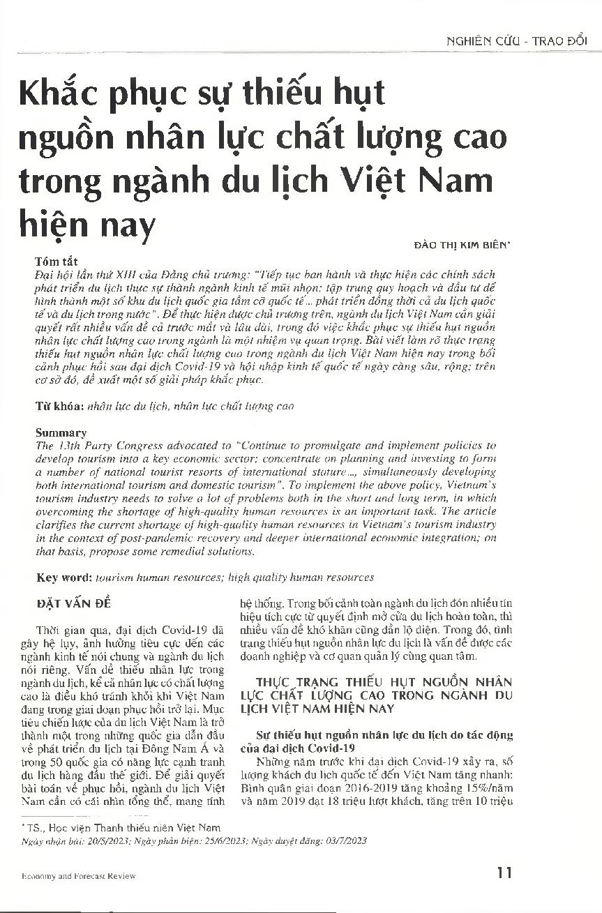 Khắc phục sự thiếu hụt nguồn nhân lực chất lượng cao trong ngành du lịch Việt Nam hiện nay