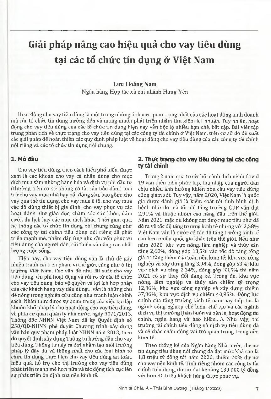 Giải pháp nâng cao hiệu quả cho vay tiêu dùng tại các tổ chức tín dụng ở Việt Nam