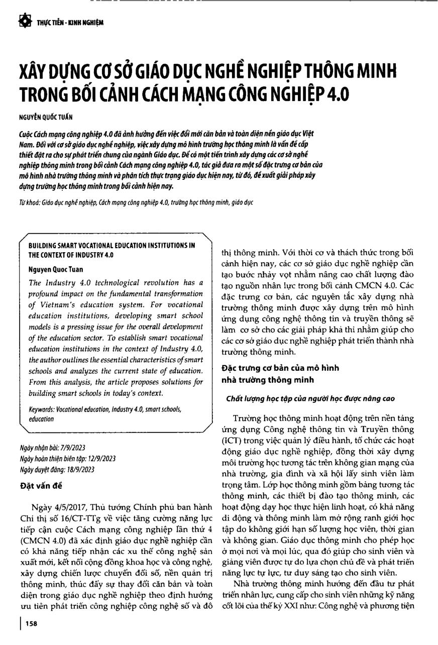 Xây dựng cơ sở giáo dục nghề nghiệp thông minh trong bối cảnh Cách mạng công nghiệp 4.0