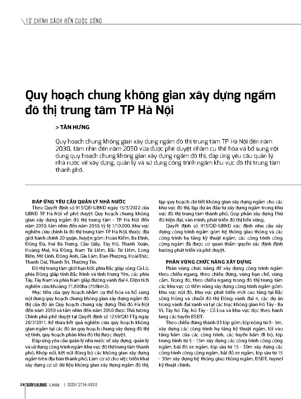 Quy hoạch chung không gian xây dựng ngầm đô thị trung tâm TP Hà Nội