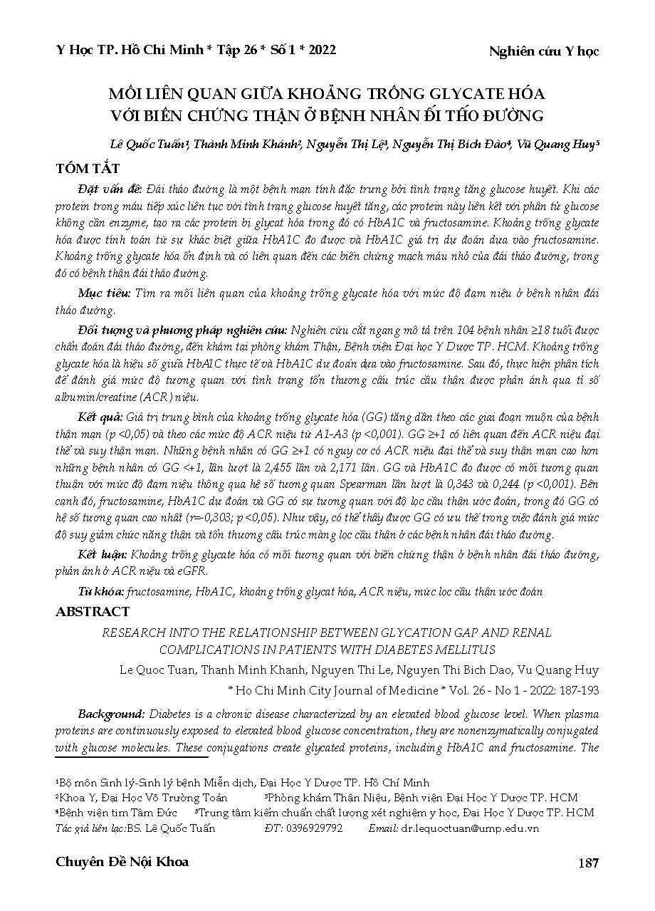 Mối liên quan giữa khoảng trống glycate hóa với biến chứng thận ở bệnh nhân đái tháo đường