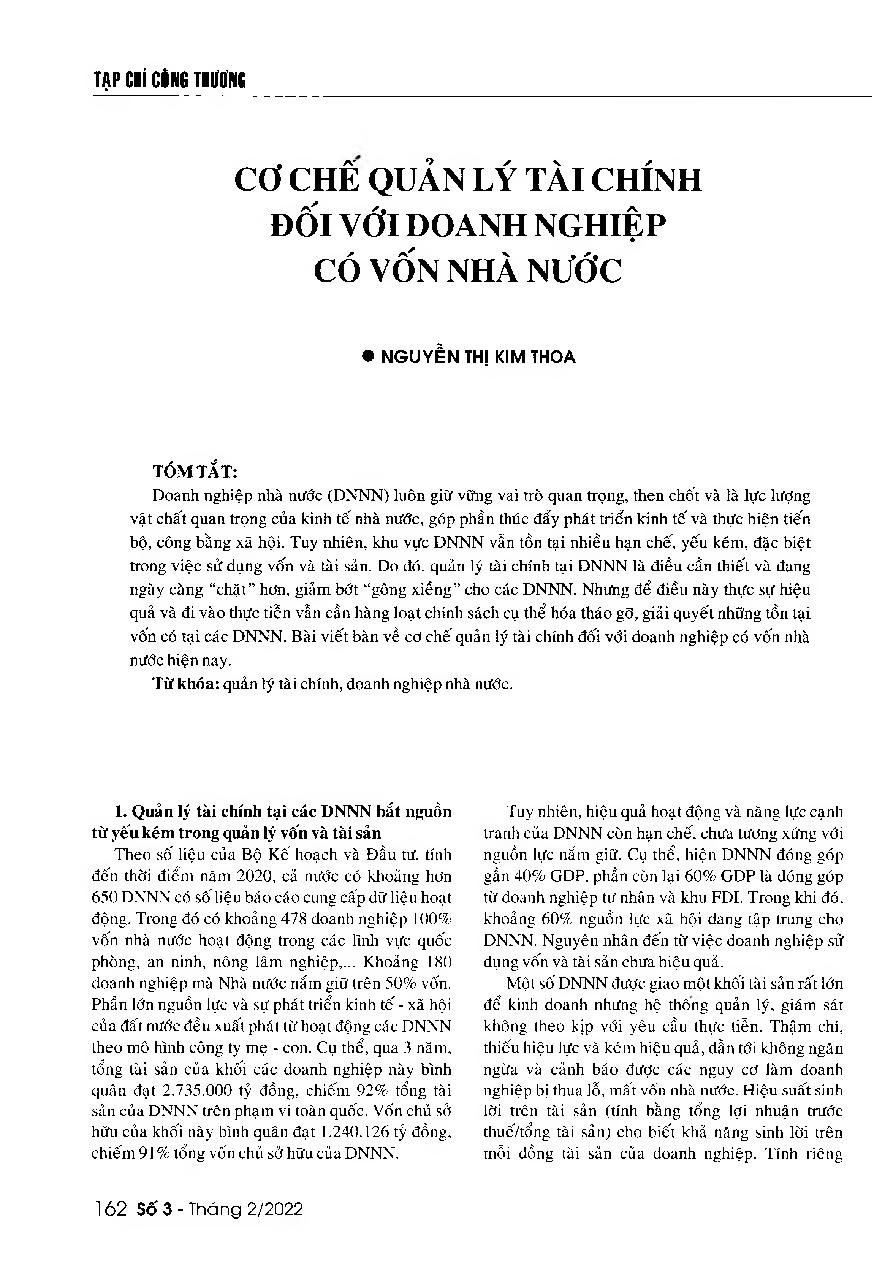 Cơ chế quản lý tài chính đối với doanh nghiệp có vốn nhà nước = The financial management mechanism for state-owned enterprises