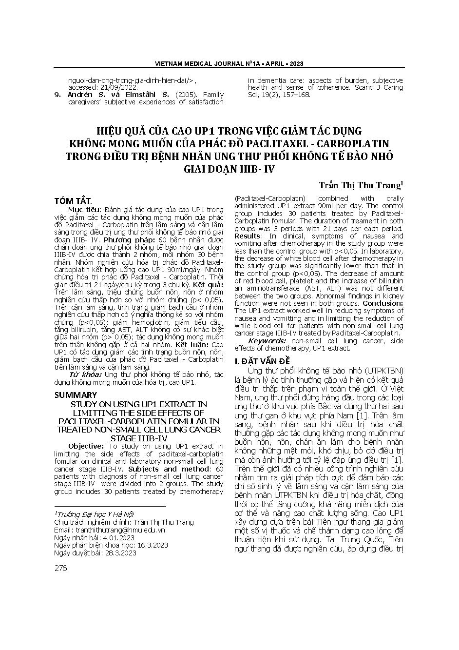 Hiệu quả của cao UP1 trong việc giảm tác dụng không mong muốn của phác đồ paclitaxel - carboplatin trong điều trị bệnh nhân ung thư phổi không tế bào nhỏ giai đoạn IIIB- IV = Study on using UP1 extract in limiting the side effects of paclitaxel-carboplati