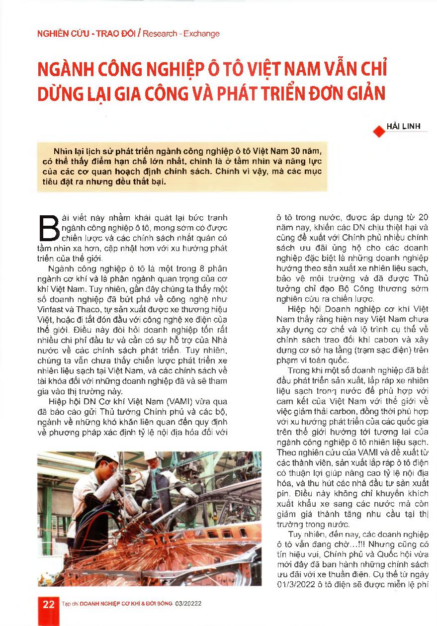 Ngành công nghiệp ô tô Việt Nam vẫn chỉ dừng lại gia công và phát triển đơn giản = The Vietnamese automotive industry development got stalled at simple outsourcing