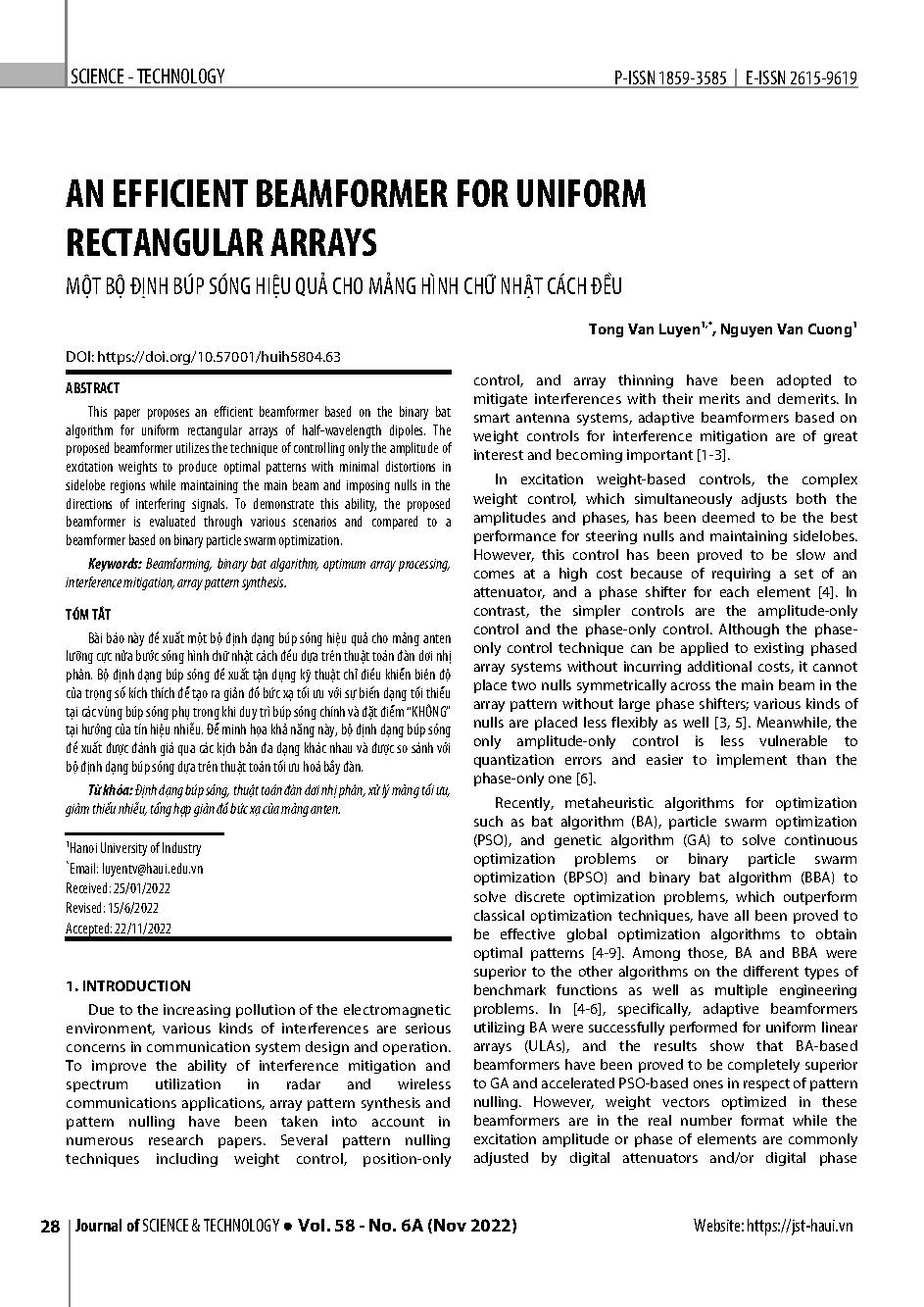 Một bộ định búp sóng hiệu quả cho mảng hình chữ nhật cách đều = An efficient beamformer for uniform rectangular arrays