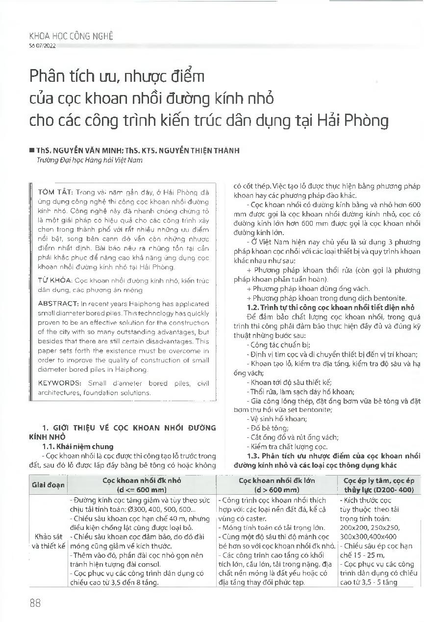 Phân tích ưu, nhược điểm của cọc khoan nhồi đường kính nhỏ cho các công trình kiến trúc dân dụng tại Hải Phòng = Advantages and disadvantages of small diameter pipes for civil works Hai Phong city