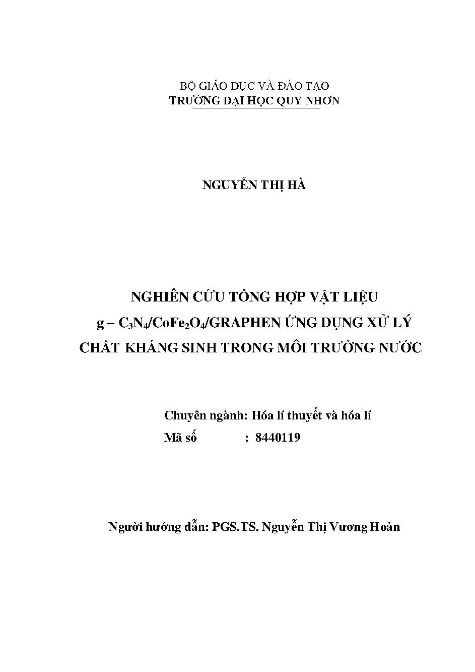 Nghiên cứu tổng hợp vật liệu g-C3N4/CoFe2O4/graphen ứng dụng xử lý chất kháng sinh trong môi trường nước
