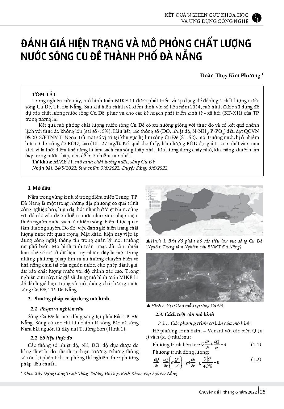 Đánh giá hiện trạng và mô phỏng chất lượng nước sông Cu Đê Thành phố Đà Nẵng = Assessment of current status and water quality modelling for the Cu De river in Da Nang city