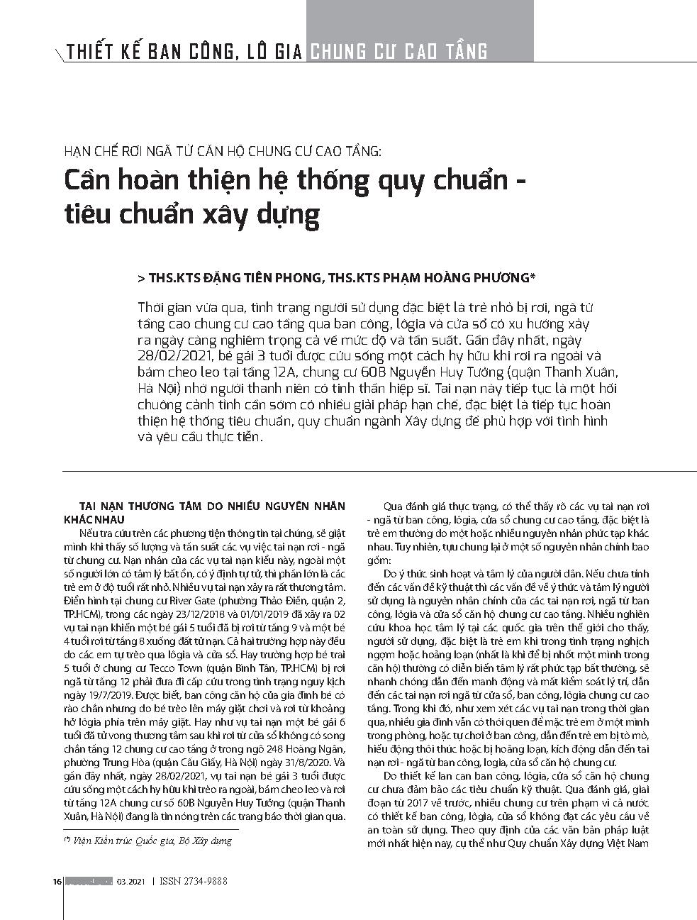 Hạn chế rơi ngã từ căn hộ chung cư cao tầng: Cần hoàn thiện hệ thống quy chuẩn - tiêu chuẩn xây dựng