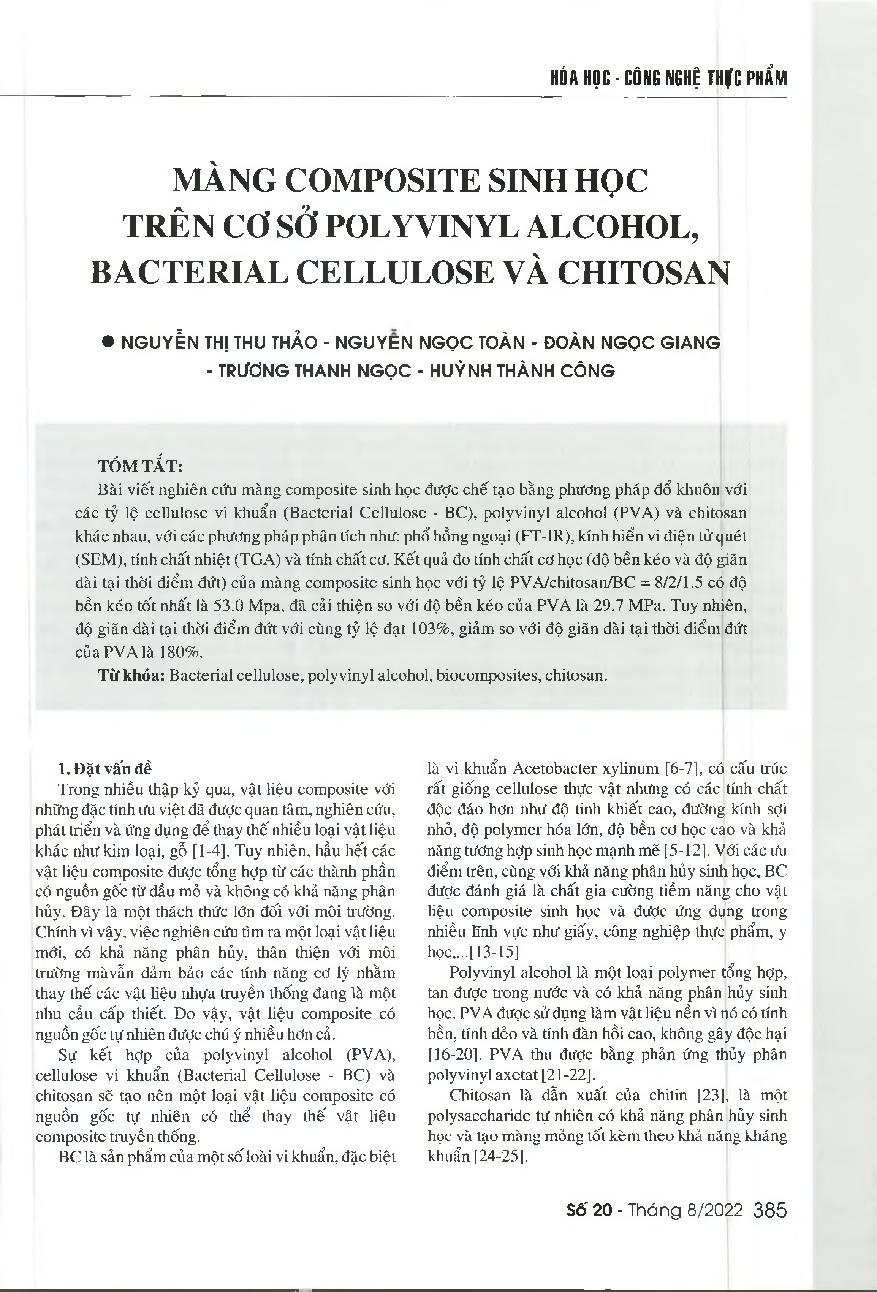Màng composite sinh học trên cơ sở polyvinyl alcohol, bacterial cellulose và chitosan = A study on biocomposite films made from polyvinyl alcohol (PVA), bacterial cellulose (BC) and chitosan