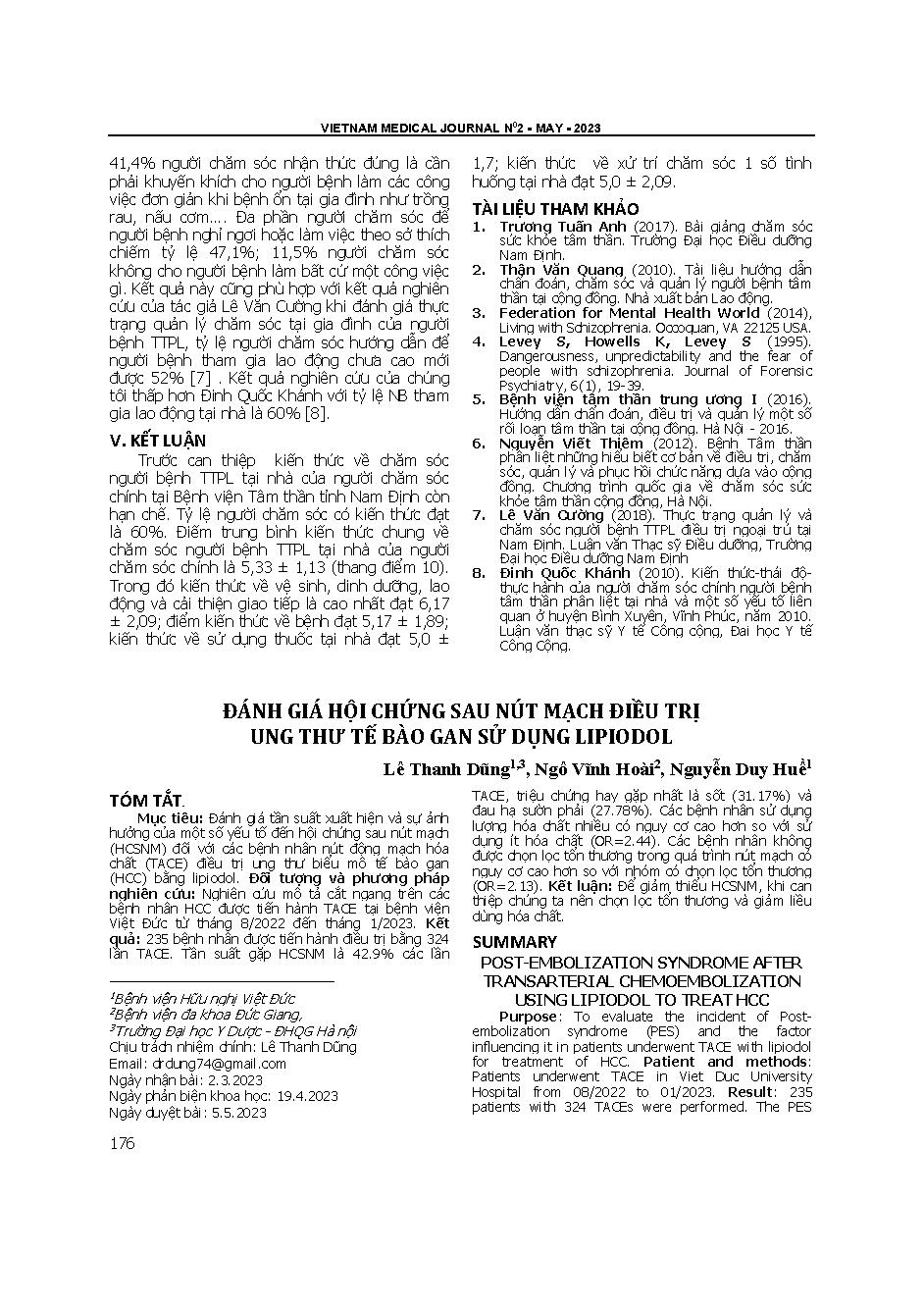 Đánh giá hội chứng sau nút mạch điều trị ung thư tế bào gan sử dụng lipiodol = Post-embolization syndrome after transarterial chemoembolization using lipiodol to treat HCC