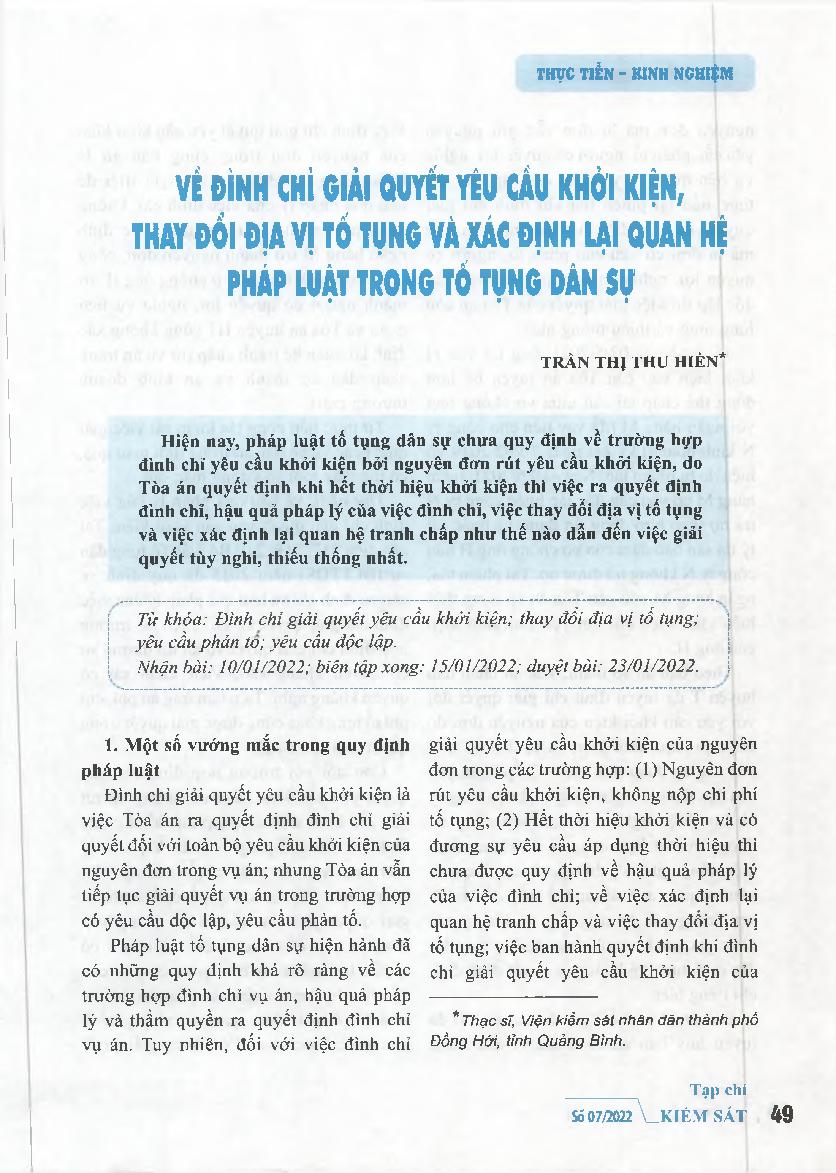 Về đình chỉ giải quyết yêu cầu khởi kiện, thay đổi địa vị tố tụng và xác định lại quan hệ pháp luật trong tố tụng dân sự