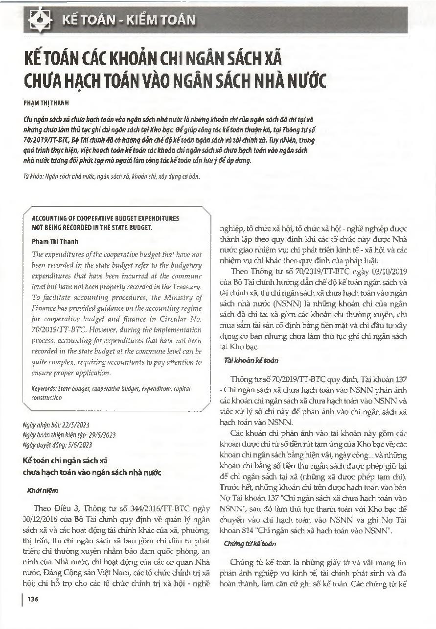 Kế toán các khoản chi ngân sách xã chưa hạch toán vào ngân sách nhà nước