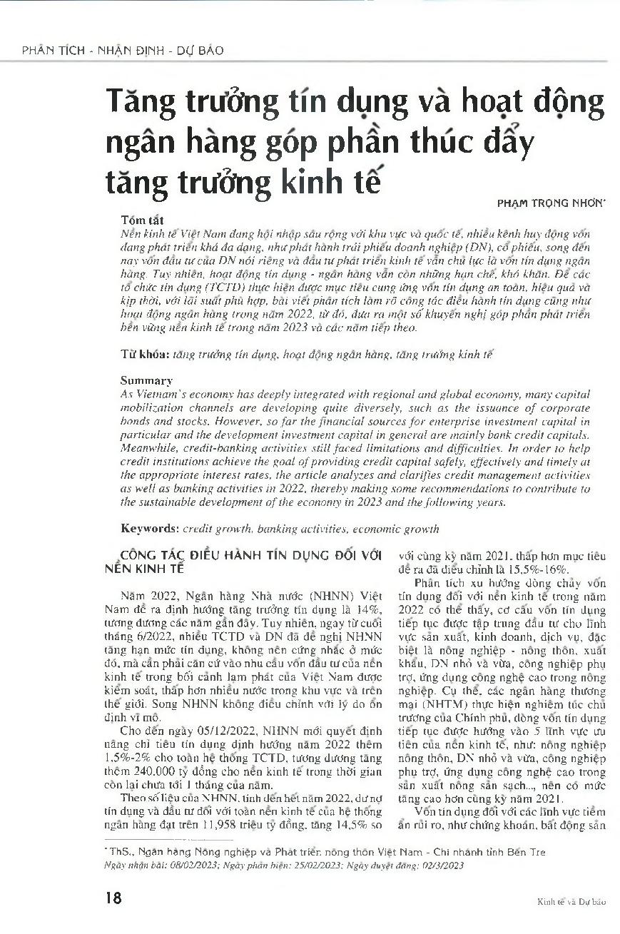 Tăng trưởng tín dụng và hoạt động ngân hàng góp phần thúc đẩy tăng trưởng kinh tế