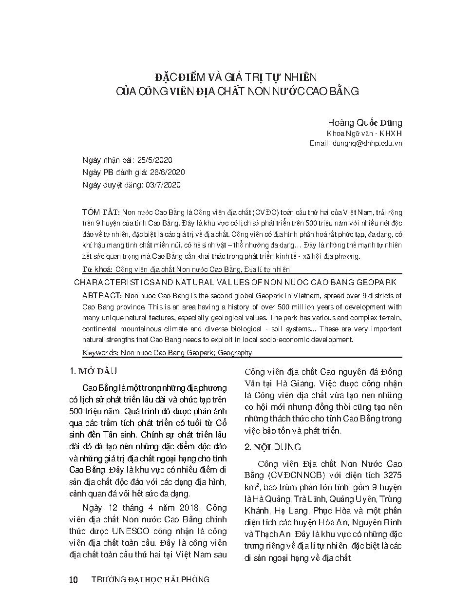 Đặc điểm và giá trị tự nhiên của Công viên địa chất Non nước Cao Bằng = Characteristics and natural values of Non Nuoc Cao Bang geopark