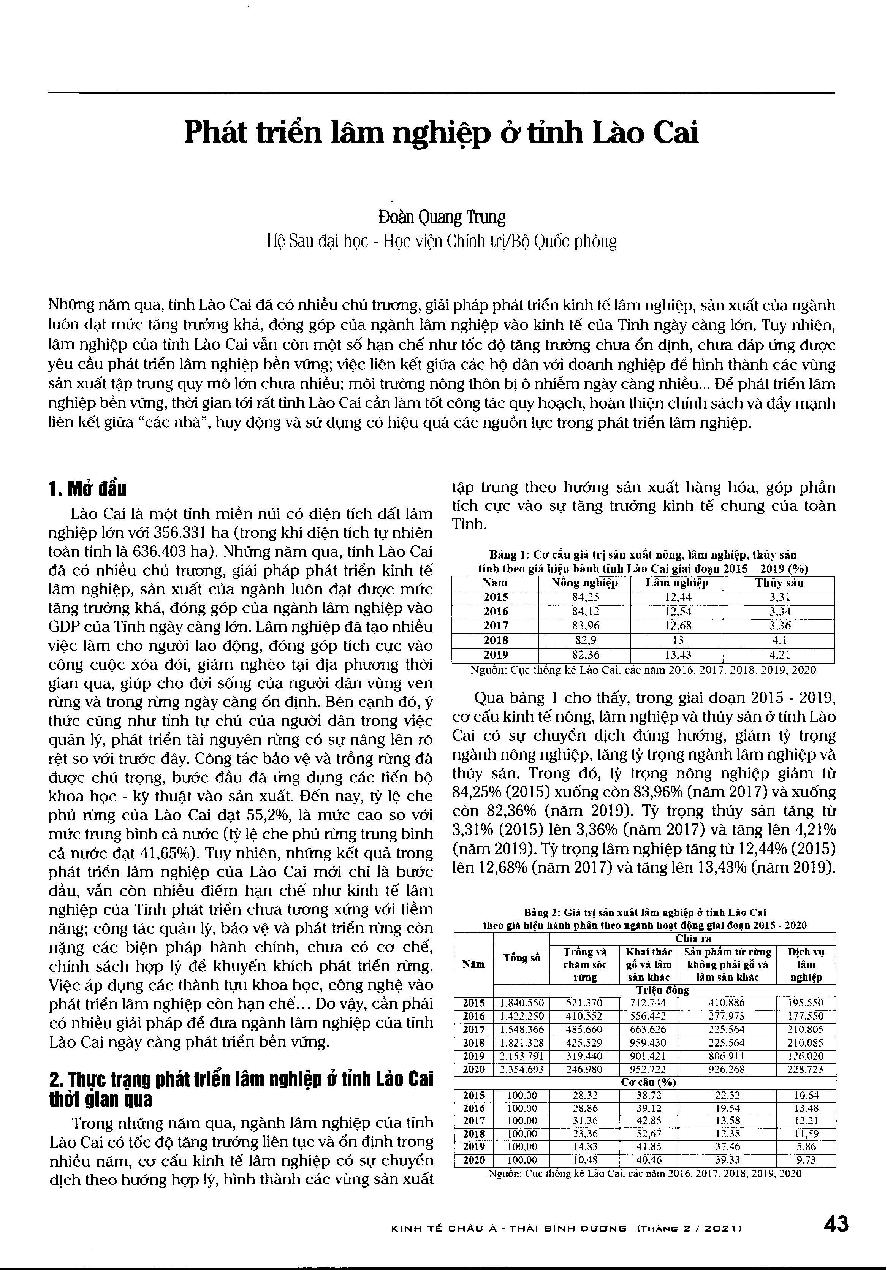 Phát triển lâm nghiệp ở tỉnh Lào Cai