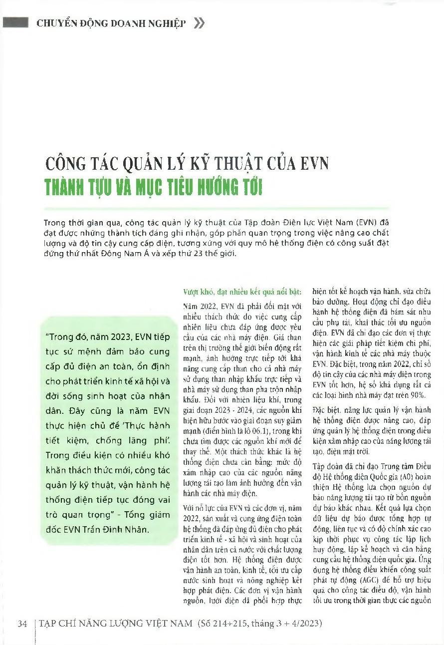 Công tác quản lý kỹ thuật của EVN thành tựu vá mục tiêu hướng tới