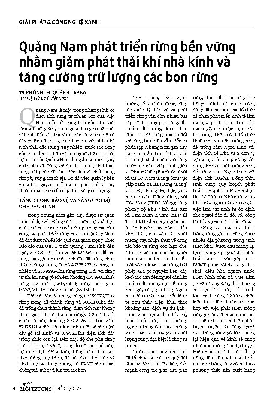 Quảng Nam phát triển rừng bền vững nhằm giảm phát thải khí nhà kính và tăng cường trữ lượng các bon rừng