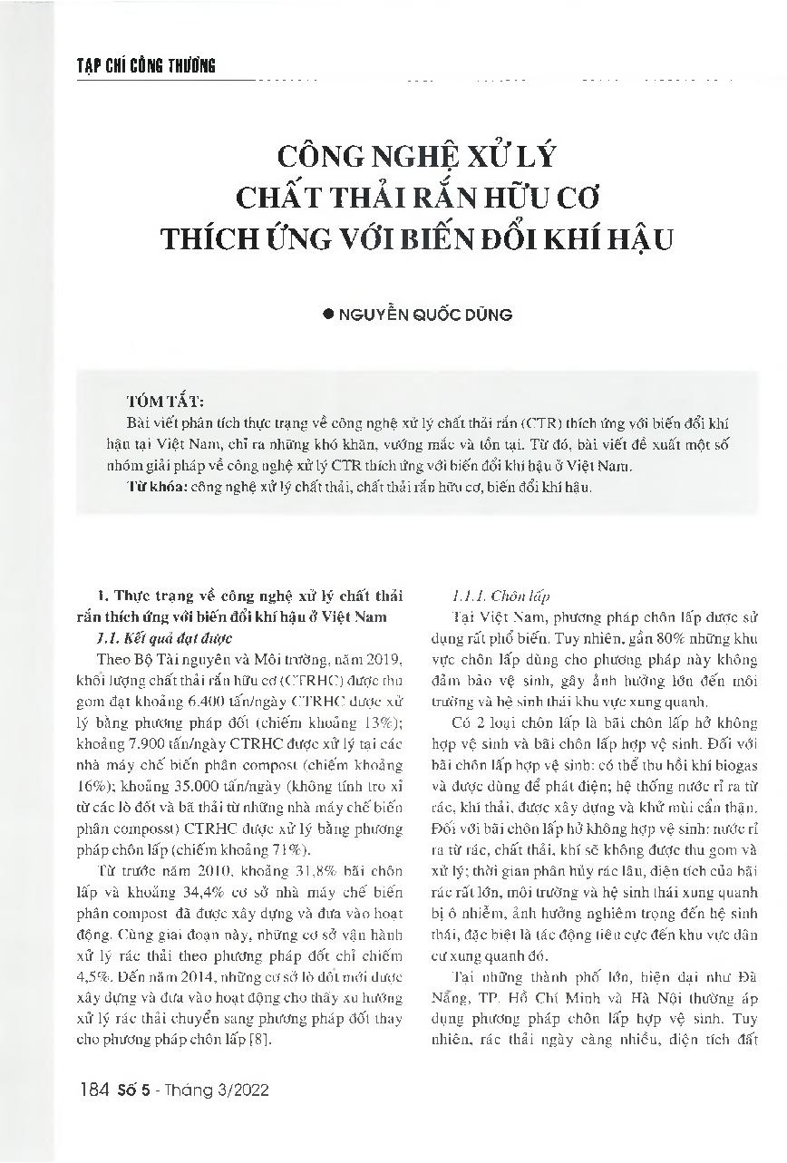 Công nghệ xử lý chất thải rắn hữu cơ thích ứng với biến đổi khí hậu = The solid waste treatment technology for adapting to climate change