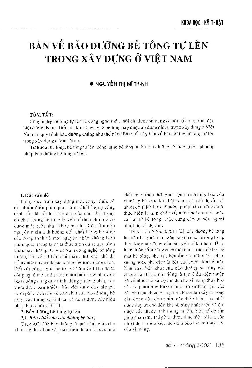 Bàn về bảo dưỡng bê tông tự lèn trong xây dựng ở Việt Nam