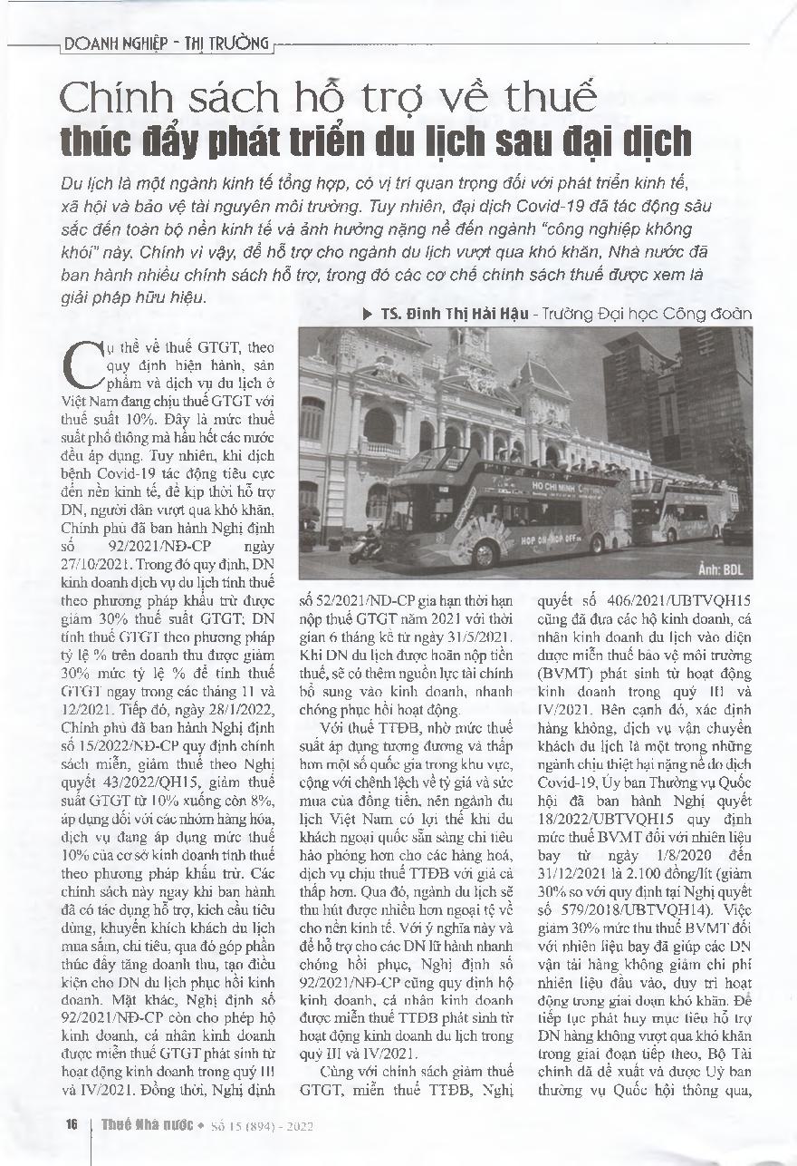 Chính sách hỗ trợ về thuế thúc đẩy phát triển du lịch sau đại dịch = Tax support policies promote tourism development after the pandemic