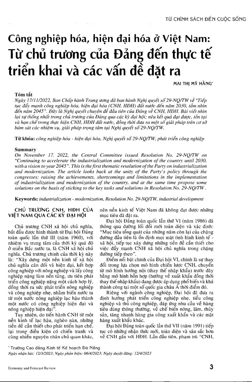 Công nghiệp hóa, hiện đại hóa ở Việt Nam: Từ chủ trương của Đảng đến thực tế triển khai và các vấn đề đặt ra