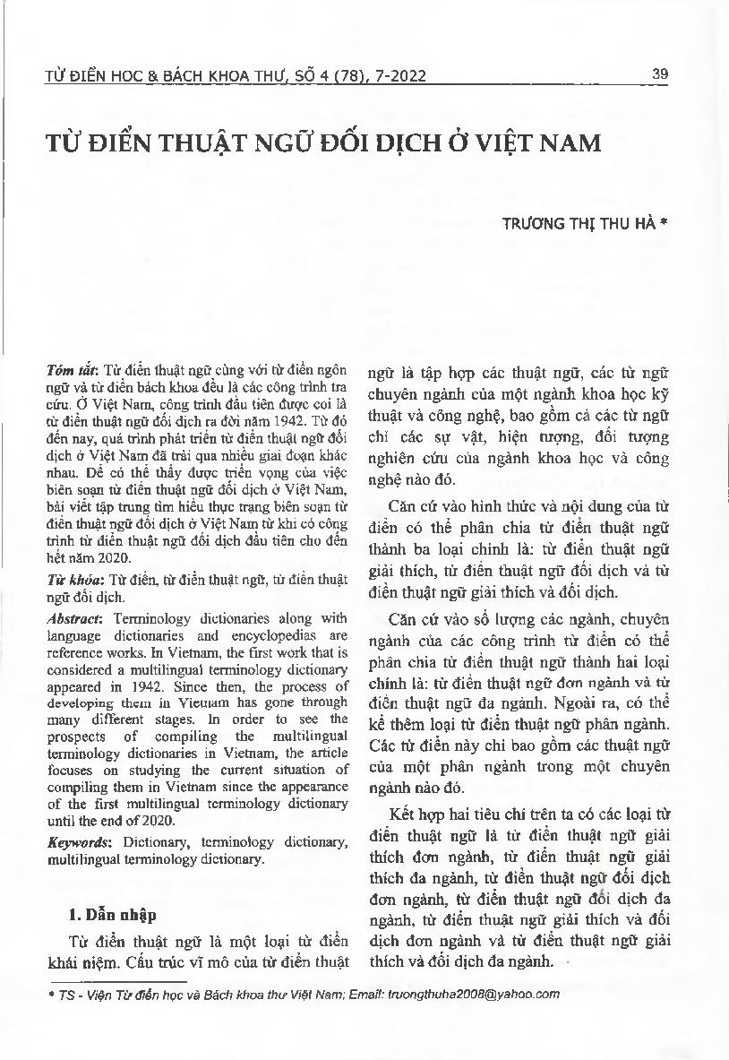 Từ điển thuật ngữ đối dịch ở Việt Nam = Multilingual terminology dictionaries in Vietnam