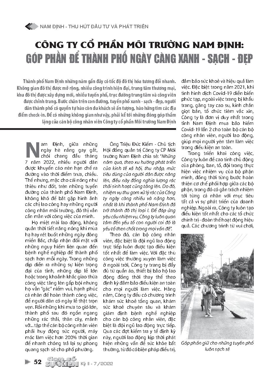 Công ty Cổ phần Môi trường Nam Định: Góp phần để thành phố ngày càng xanh - sạch - đẹp = Nam Dinh Environment Joint Stock Company: Contributing to making the city greener - clean - beautiful