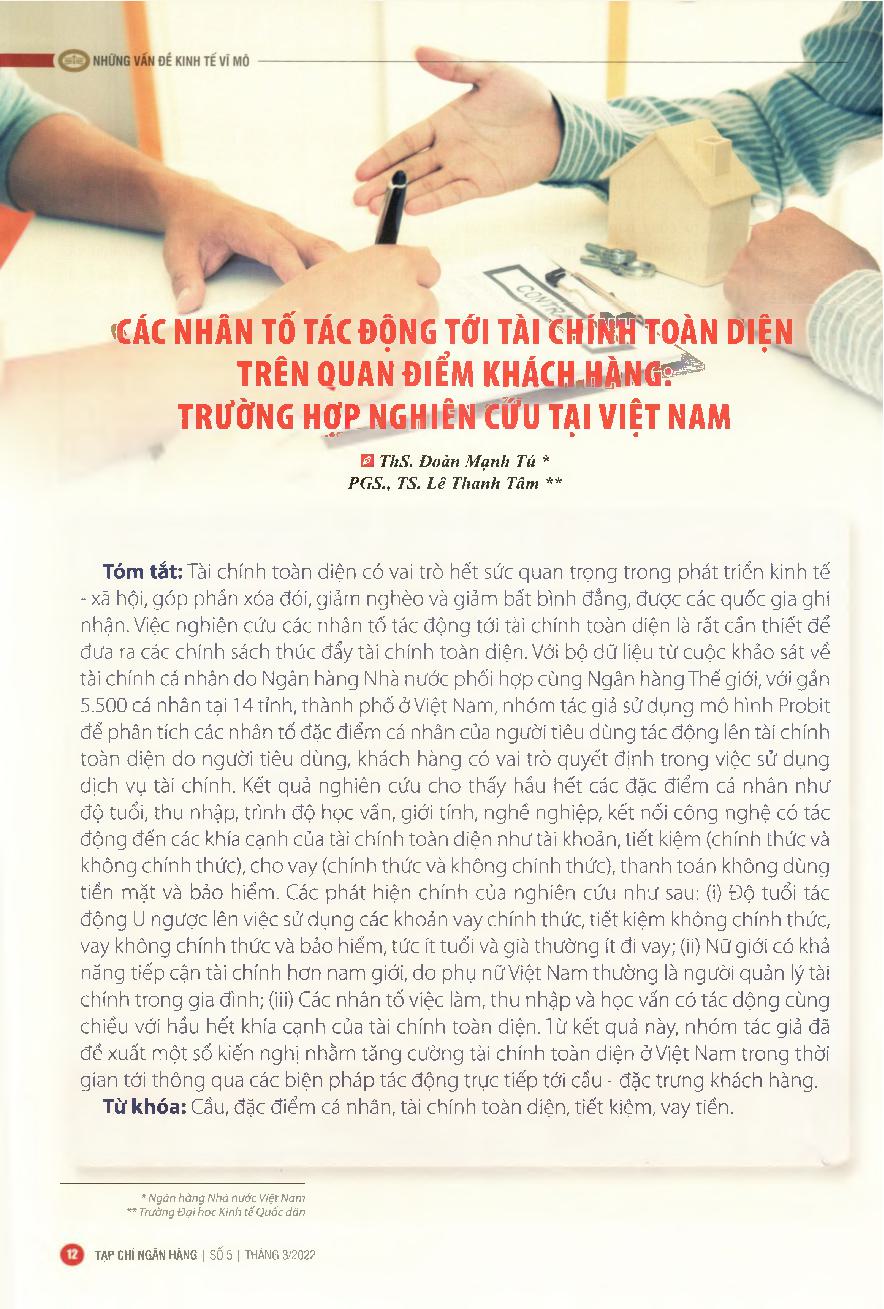 Các nhân tố tác động tới tài chính toàn diện trên quan điểm khách hàng: Trường hợp nghiên cứu tại Việt Nam = Prefix effects on resource comprehensives from the customer&; 39;s perspective: Research collaboration in Vietnam