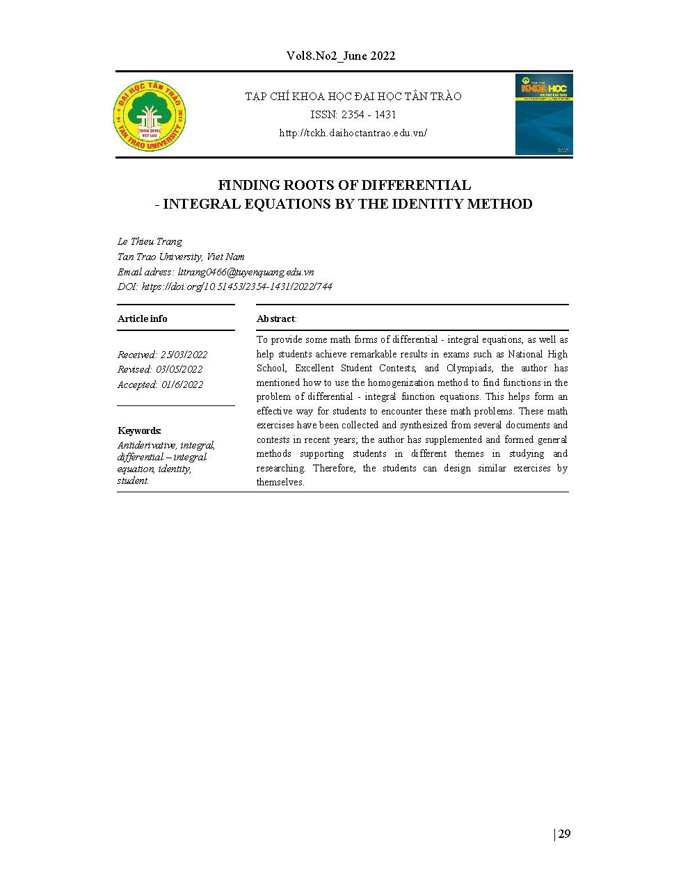 Tìm nghiệm của phương trình hàm vi - tích phân bằng phương pháp đồng nhất = Finding roots of differential - integral equations by the identity method