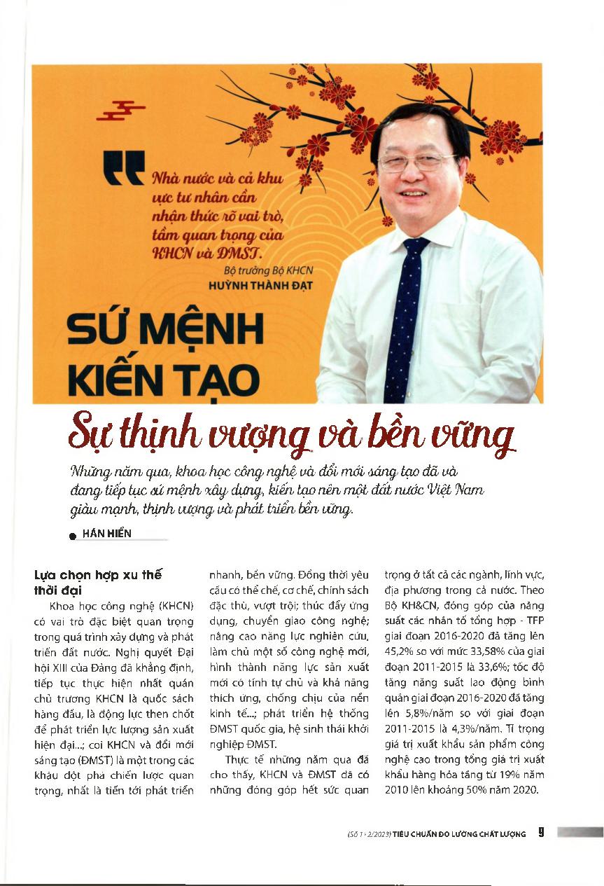 Sứ mệnh kiến tạo sự thịnh vượng và bền vững