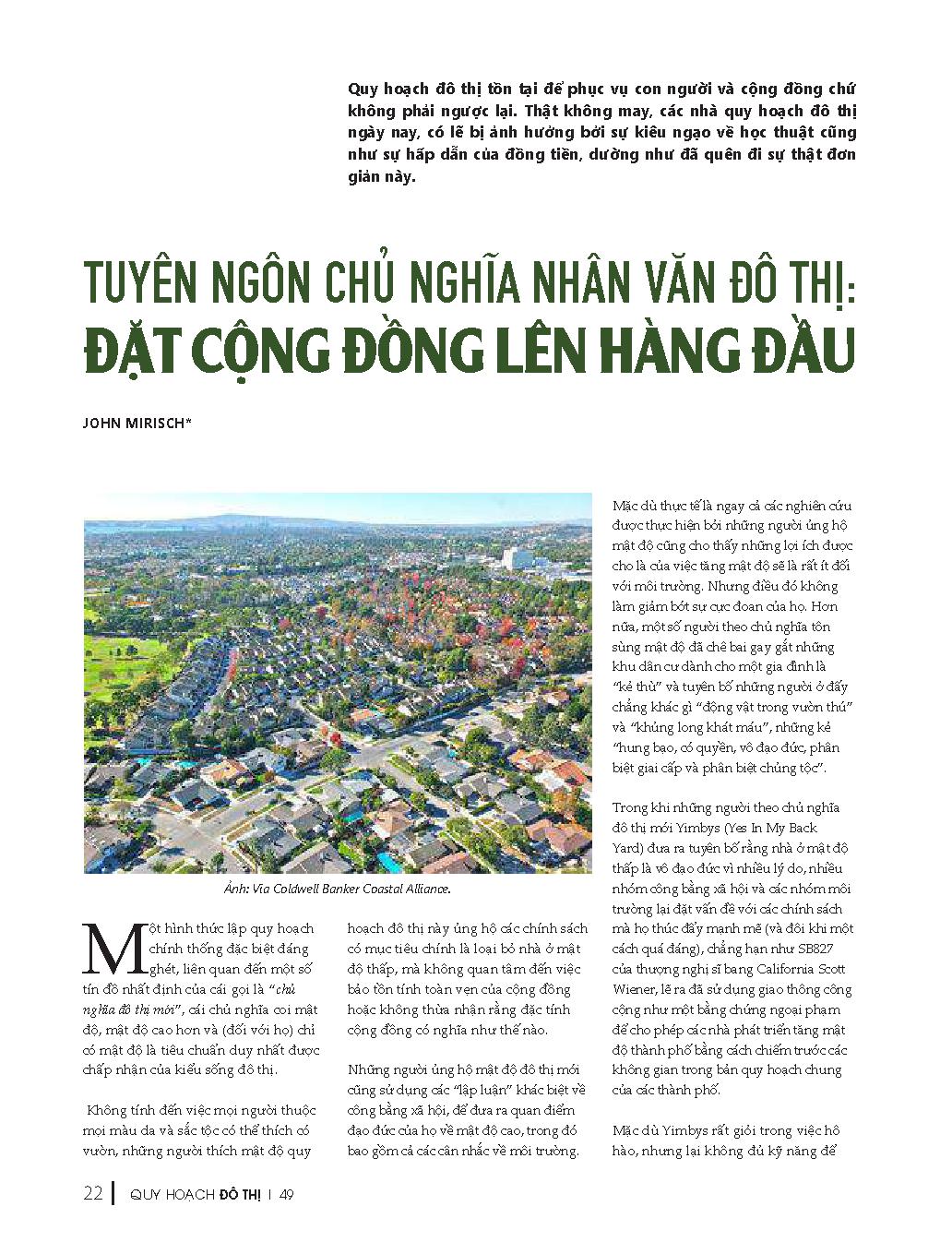 Tuyên ngôn Chủ nghĩa nhân văn đô thị: Đặt Cộng đồng lên hàng đầu