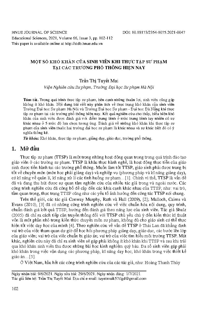 Một số khó khăn của sinh viên khi thực tập sư phạm tại các trường phổ thông hiện nay = Some difficulties of students when practicing pedagogy in high schools today
