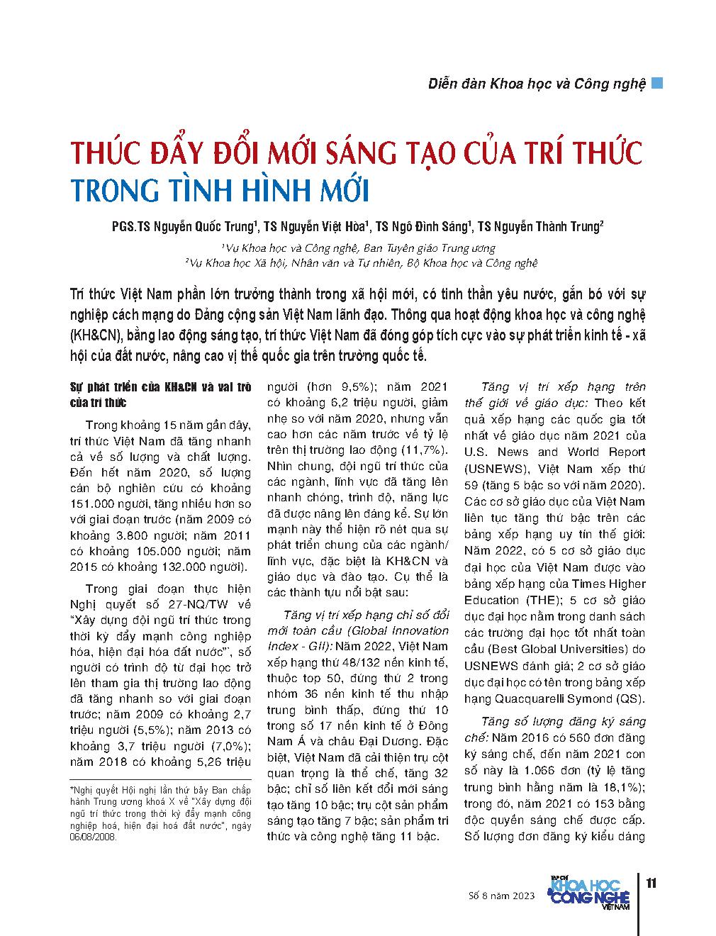 Thúc đẩy đổi mới sáng tạo của trí thức trong tình hình mới